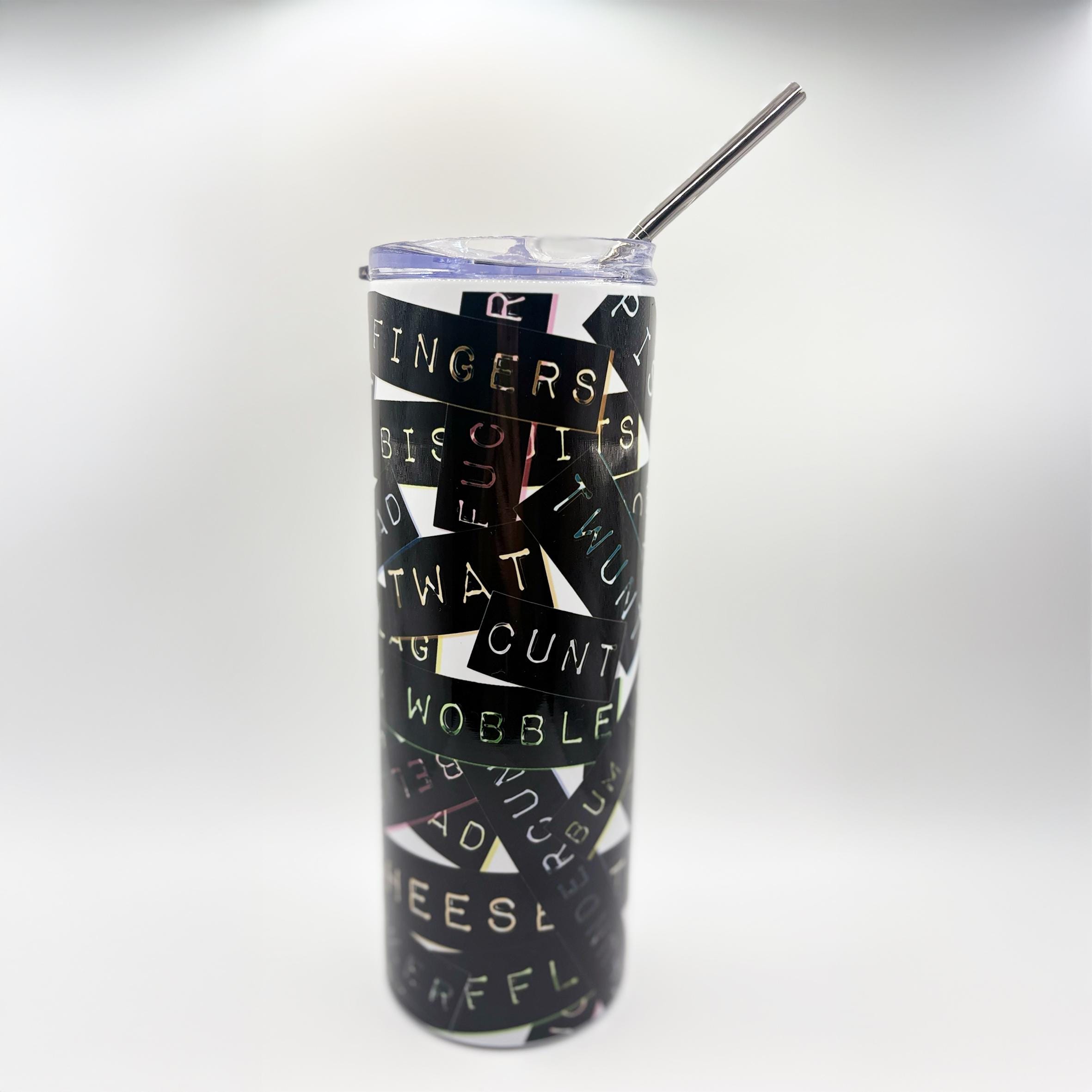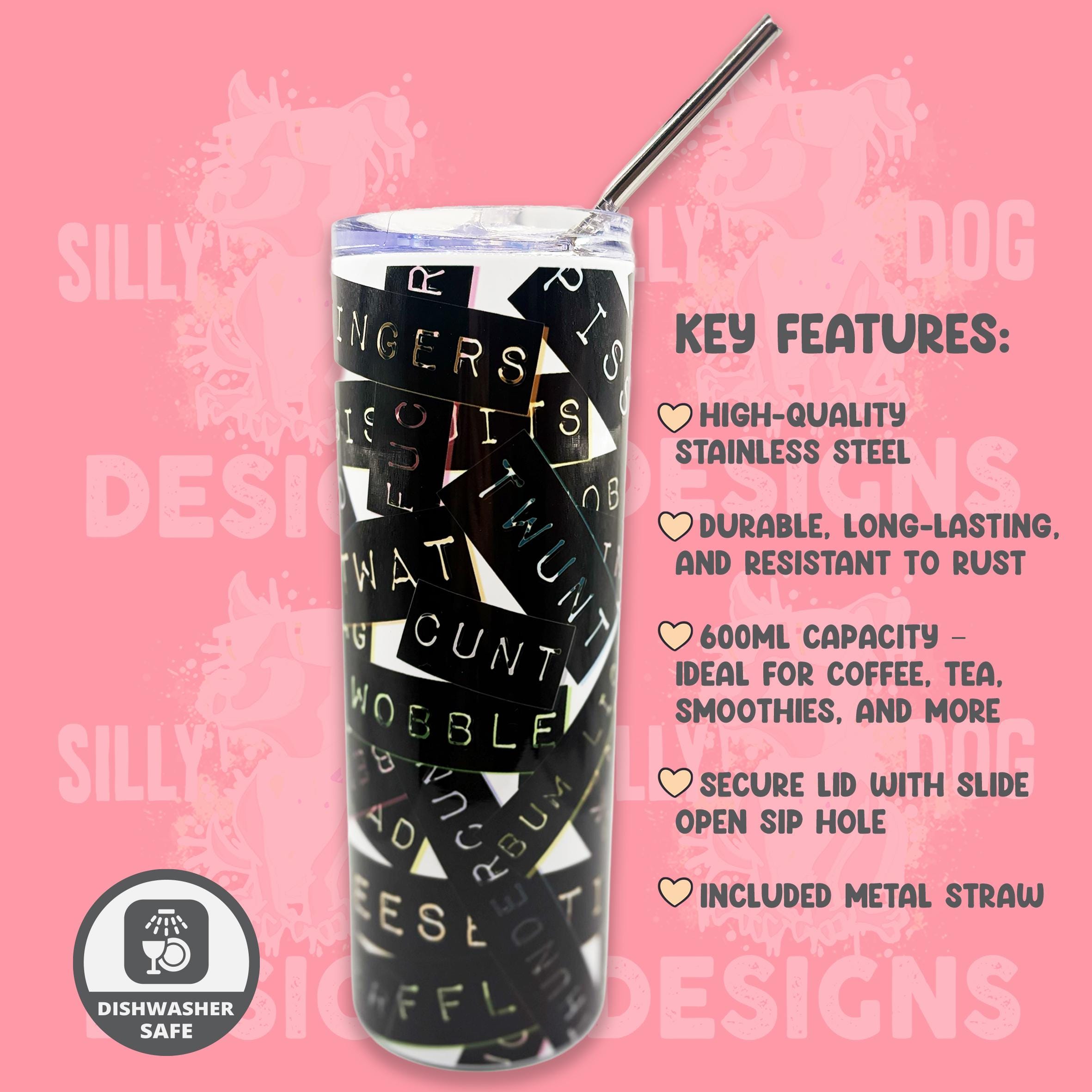 Featuring a striking black label-style wrap filled with cheeky, offensive, and laugh-out-loud language, this design makes a statement before you’ve even taken your first sip. Perfect for home, the office, or anywhere you want to make it very clear that “Live Laugh Love” is not your vibe.
