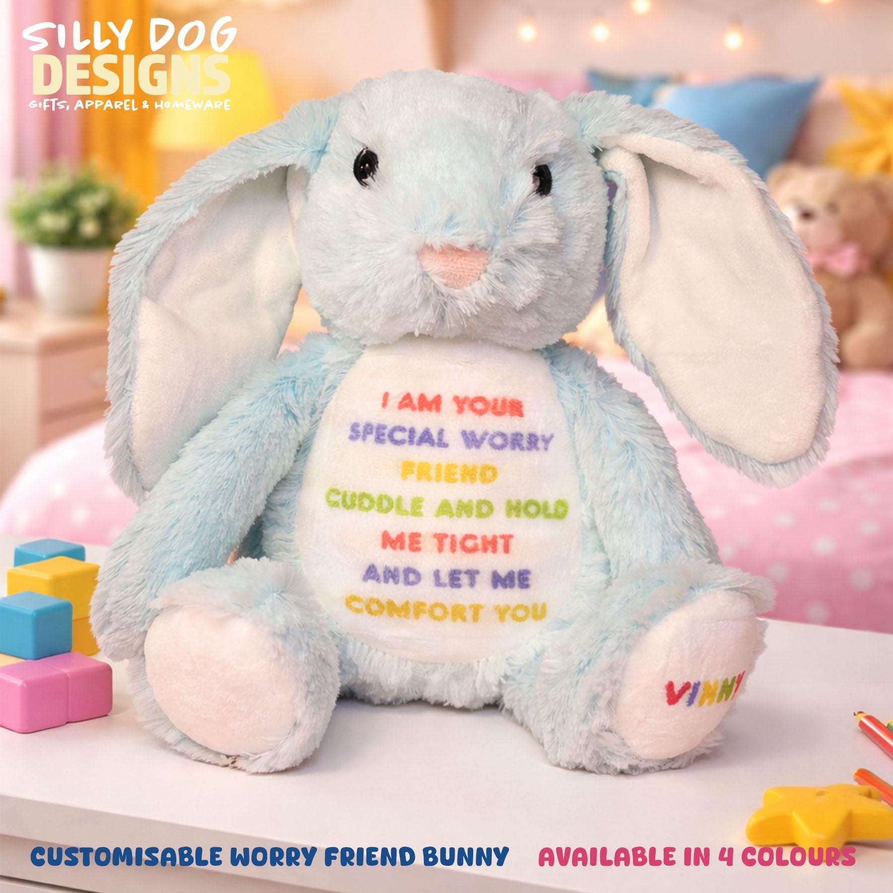 Meet your child’s Personalised Worry Bunny, a soft and comforting plush designed to help children feel safe, calm, and supported during moments of worry, change, or overwhelm.